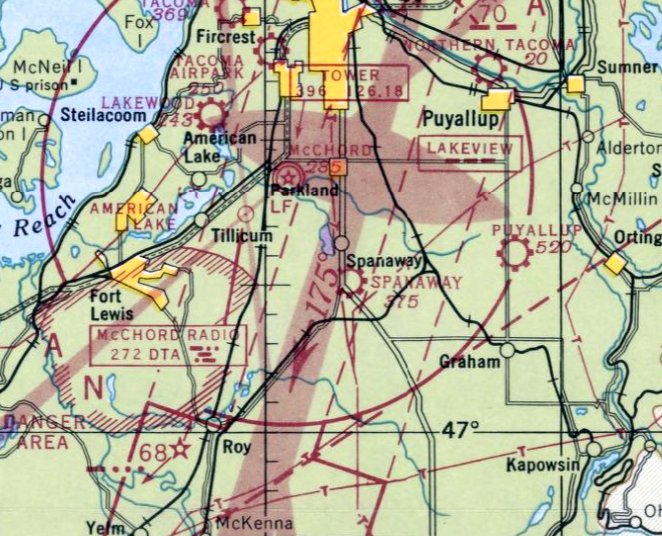 The earliest depiction which has been located of Spanaway Airport was on the April 1946 Seattle Sectional Chart.