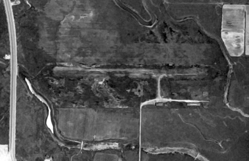 A 1968 aerial view showed North Frontage Road had been constructed over the runway alignment,
