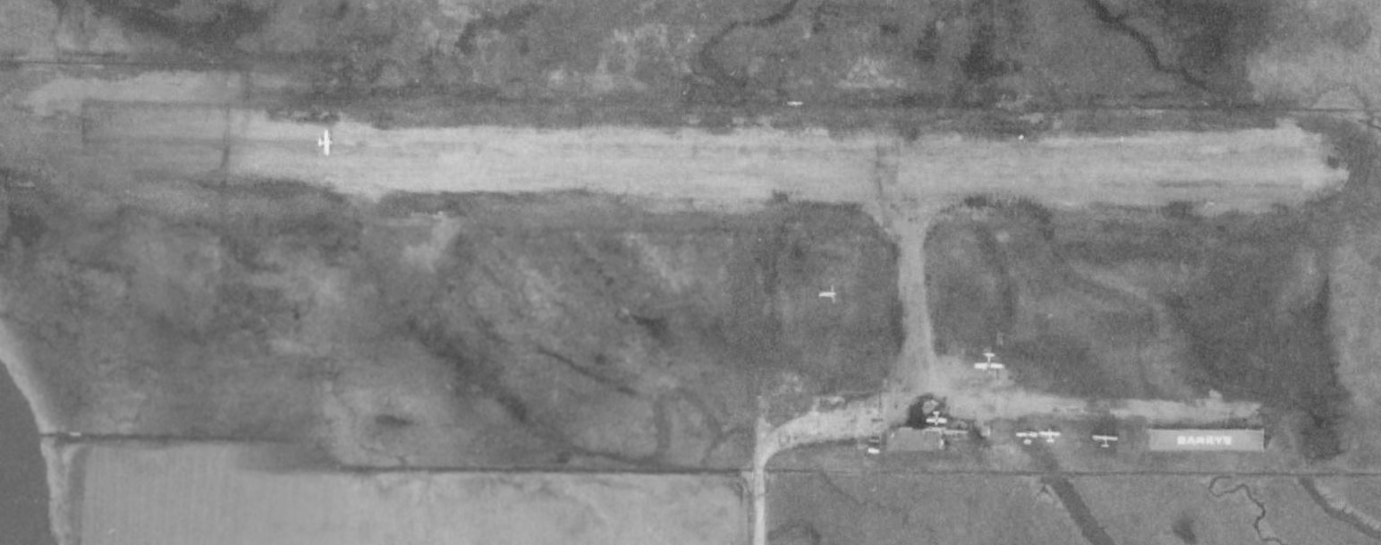 It depicted Barry's as having a single east/west unpaved runway, with a parking area & a few small buildings (one with “Barry's” painted on its roof) on the southeast side.