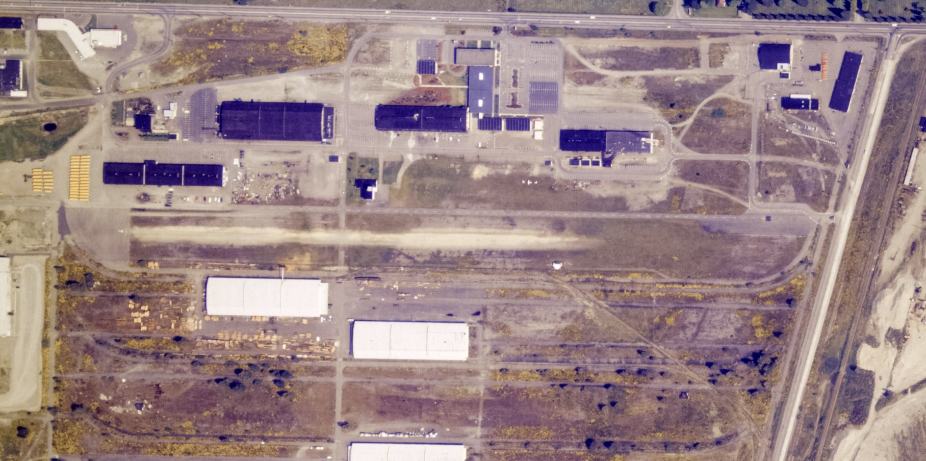 Some kind of industrial building had been built at some point along the south side of the former airport property.
