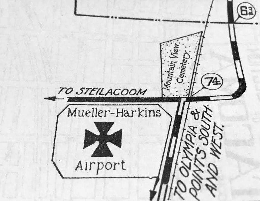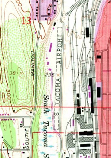 It depicted South Tacoma Airport as having a north/south runway, with several rows of hangars & over a dozen light aircraft on the northwest side.