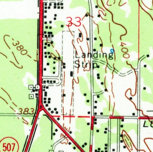 City View Airport was depicted on the 1976 USGS topo map as an unpaved northeast/southwest runway generically labeled as “Landing Strip”.