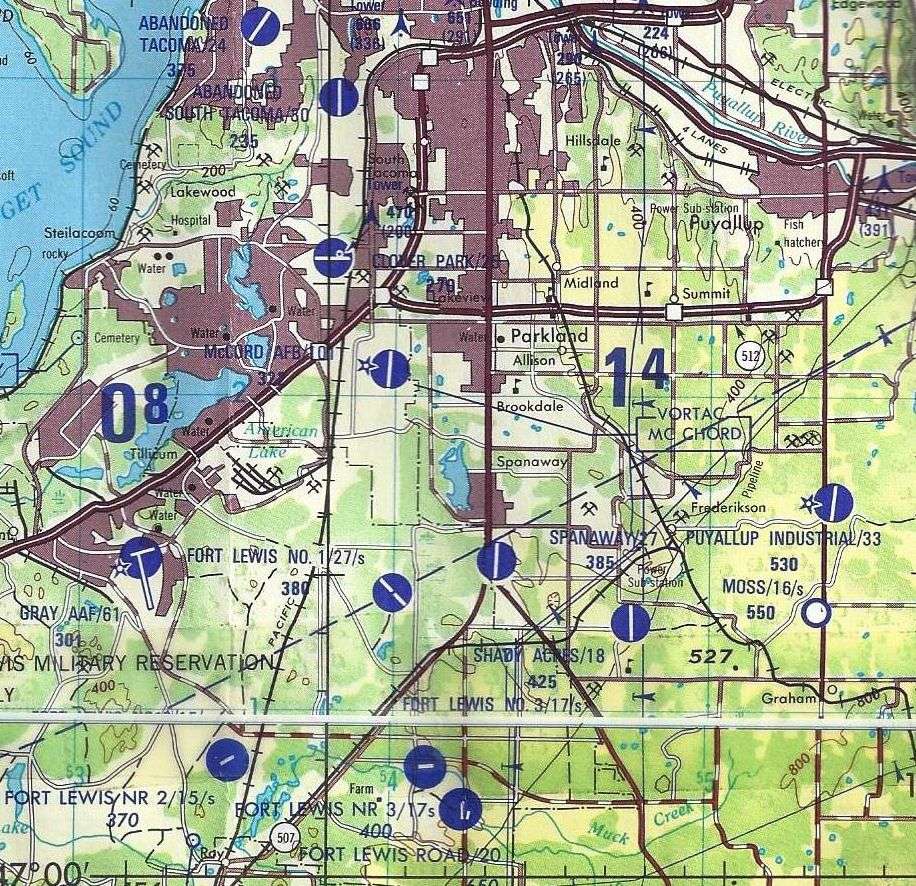 Another small general aviation field, the former Tacoma Airport was located less than 2 miles to the northwest of South Tacoma Airpark.