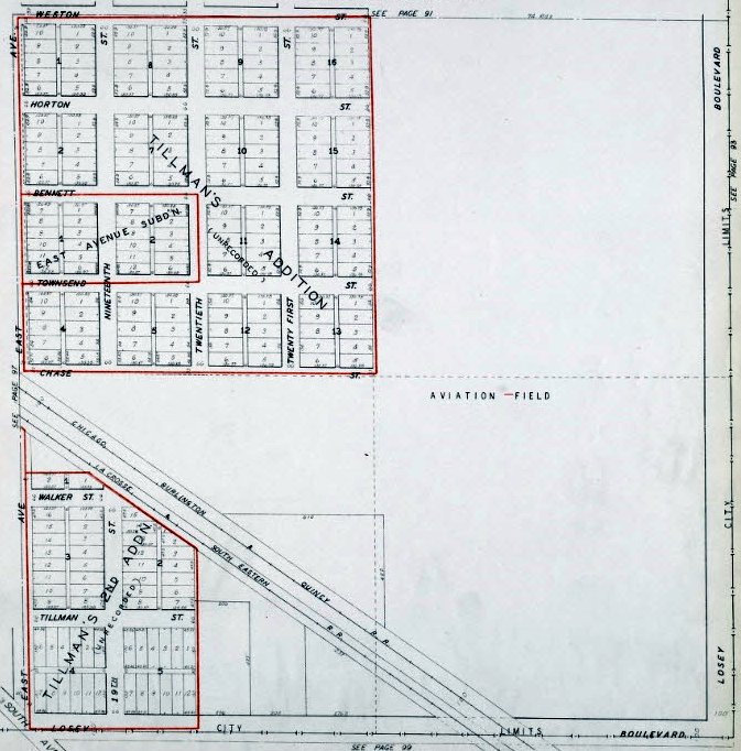 A 1930 Atlas of La Crosse County (from the University of WI Digital Collection, courtesy of Joe Farwell) depicted Salzer Field simply as “Aviation Field”.