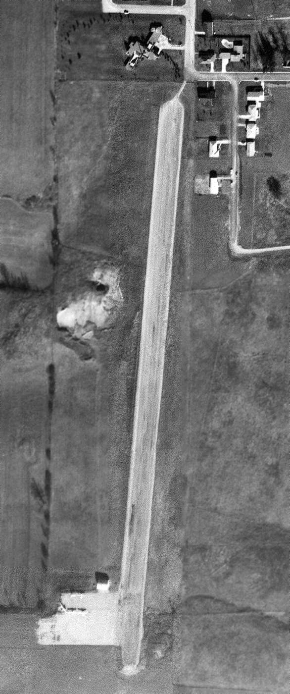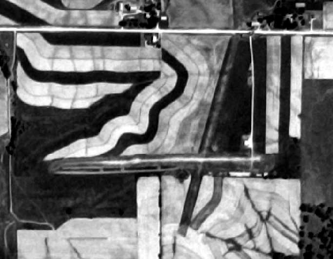 A 1995 USGS aerial view looking northwest showed the Dodgeville Airport runway was clearly marked with closed "X" symbols,