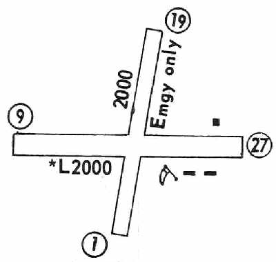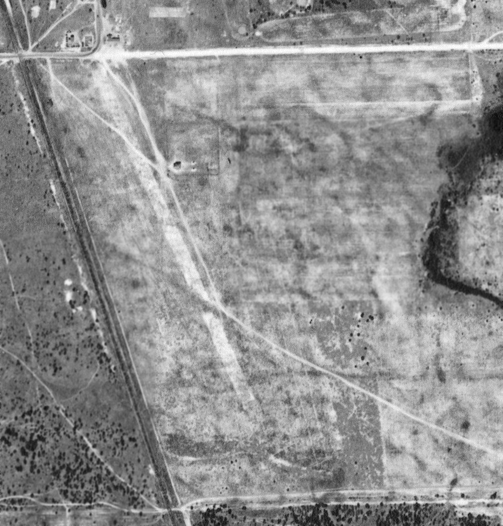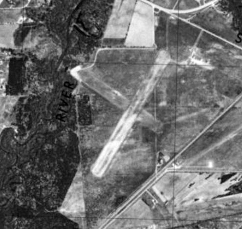 Note that an apparently unrelated unpaved northeast/southwest runway was also depicted across the road to the southeast.