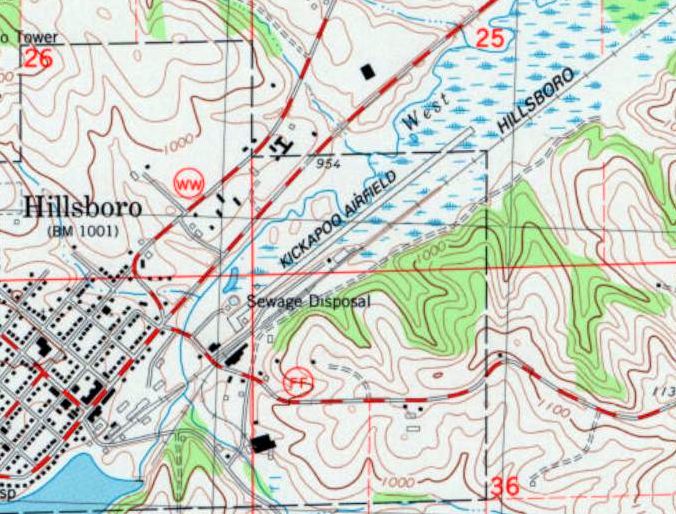 Note that the airport had extended beyond the triangular property depicted on the 1947 topo map,