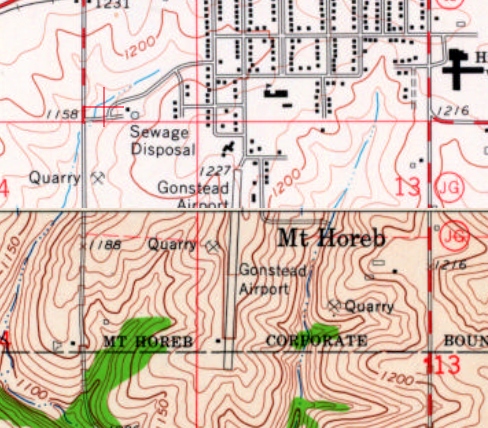 It was apparently renamed Dodgeville (and gained a paved runway) at some point within the next 3 years,