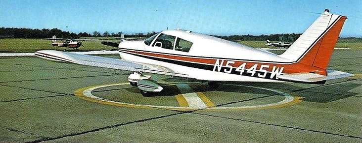 A circa 1970s photo of a Piper Warrior of Wenger Flying Service at Dodgeville Airport.