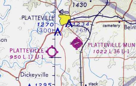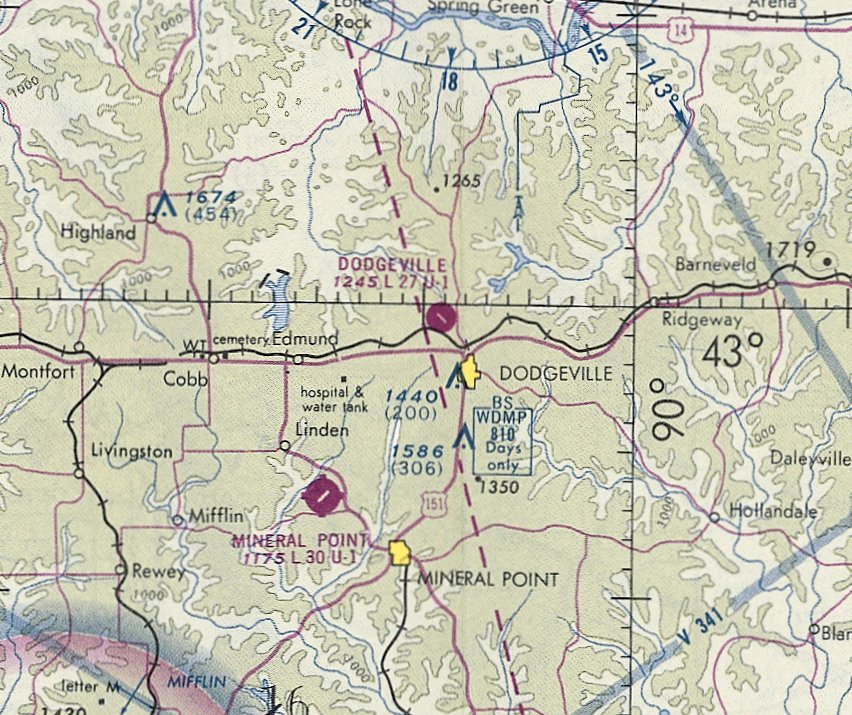 The last aeronautical chart depiction which is available of Dodgeville Airport was on the November 1974 Chicago Sectional Chart.