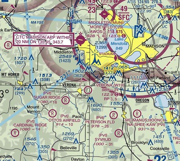 Verona Airport, as depicted on the May 1967 Milwaukee Sectional Chart.
