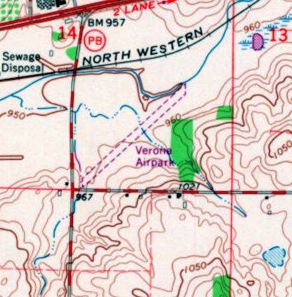 It depicted “Verona Airpark” as having a single northeast/southwest unpaved runway, but there were no buildings depicted on the field.