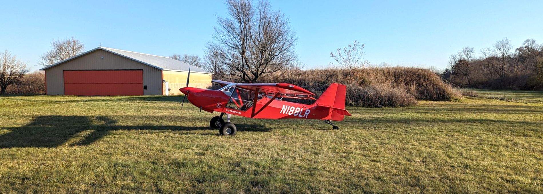 A November 2023 photo of a single-engine taildragger (model undetermined) in front of a Verona Airport hangar.