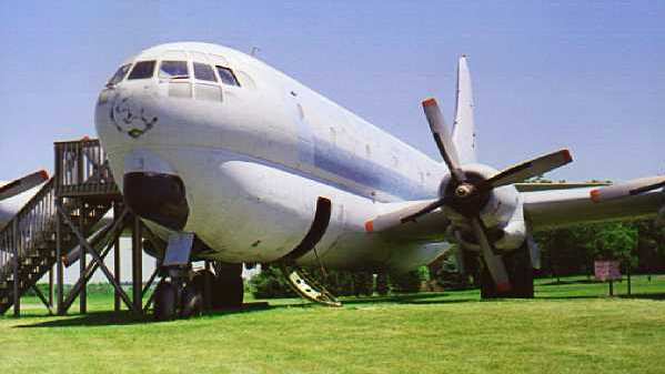 A May 2017 photo of the C-97G which sits in front of the Don Q Inn, adjacent to the south side of the former Dodgeville Municipal Airport.