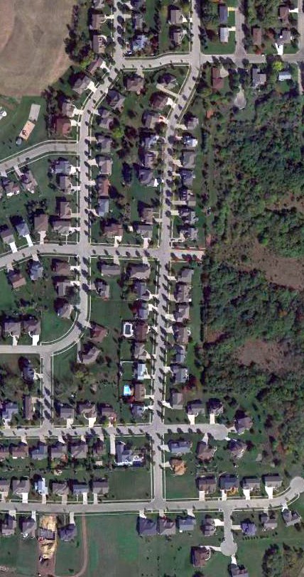 The outline of Salzer Field (annotated by Joe Farwell) on a 2015 aerial view looking north shows no trace remaining of the airport.